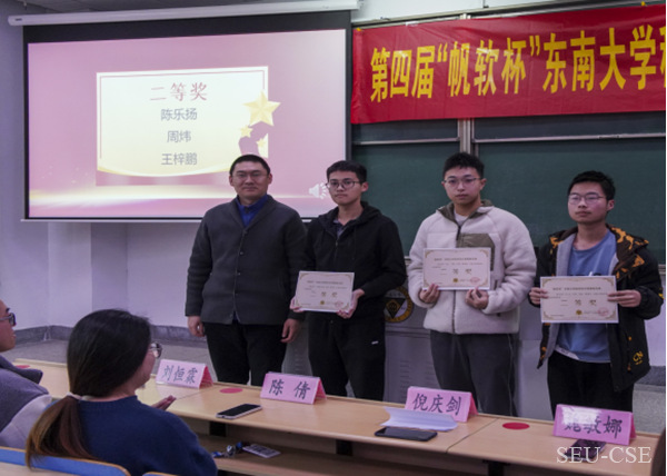 第四届“帆软杯”必威西汉姆联程序设计竞赛二等奖颁奖留影,右一为我基地陈乐扬同学